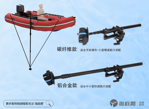 创新升级2款便携式布放杆,适配手持、轻型低速橡皮艇/船艇固定安装;中高速船只固定安装。
